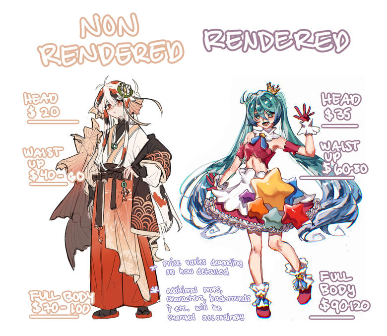 • pricing will be decided by me, with set guidelines depending on the complexity